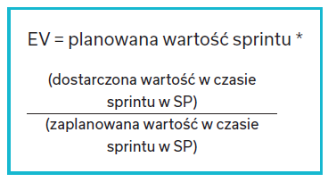 Wartość wypracowana (EV) w scrum może być obliczona za pomocą relacji obrazującej faktycznie dostarczoną i planowaną wartość sprintu wyrażoną w story pointach.
