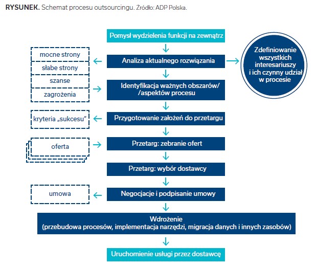 Z drugiej strony przedsiębiorstwa chętnie outsource’ują także skomplikowane i drogie zadania, które znacznie przerastają daną organizację. Outsourcing jest wówczas niezastąpionym narzędziem redukcji ryzyka biznesowego i jedynym sposobem na uzyskanie dostępu do drogich kompetencji eksperckich. Wśród tego rodzaju procesów wyróżnić możemy m.in. doradztwo prawne, złożone badania i analizy oraz usługi kadrowo-płacowe i zarządzanie kapitałem ludzkim, w których specjalizuje się ADP Polska.