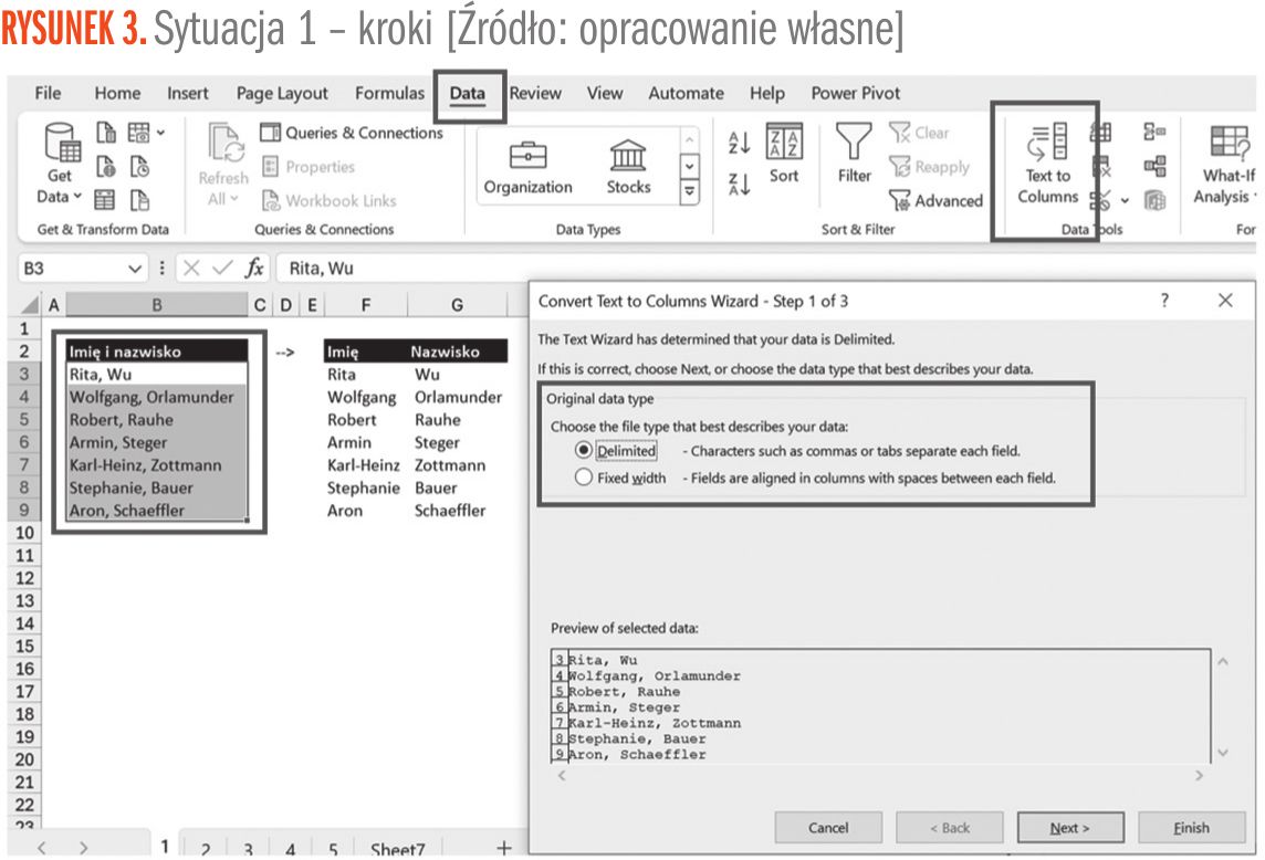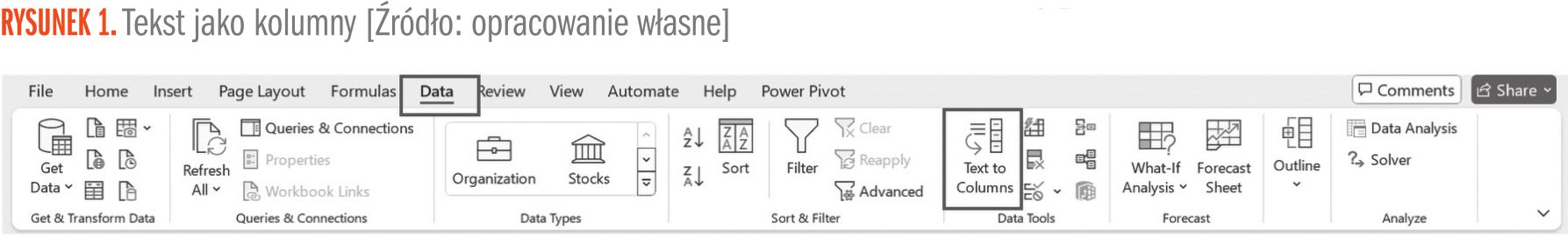 Każdy, kto pracuje z systemami komputerowymi czy bazami danych, wie, że dane mogą się jakościowo różnić od naszych oczekiwań. Normą jest otrzymywanie danych z kilku źródeł, w różnych formatach, najczęściej nie takich, jakbyśmy sobie życzyli. A jednak pracować z tymi danymi trzeba. W niniejszym artykule chciałbym przedstawić, jak w prosty sposób można podzielić dane z pomocą funkcji „tekst jako kolumny”, tak by wydobyć z zestawu danych to, co nas najbardziej interesuje.