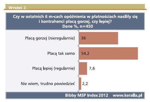 Dane te pokazują także specyfikę działania polskich MSP. To elastyczne i zaradne podmioty gospodarcze bardzo szybko reagujące na zachodzące zmiany otoczenia. Ta szybkość reakcji wynika z faktu, że najczęściej właściciel firmy jest również osobą zarządzającą, a w praktyce wykonującą wiele różnych zadań. Kluczowe osoby zajmują się jednocześnie reprezentowaniem firmy, sprzedażą, decyzjami o finansowaniu, na ściąganiu należności kończąc. Jest to zarazem ich siła, jak i słabość. Dzięki prostej strukturze można łatwo i szybko podejmować decyzje, ale najczęściej brakuje czasu na pracę nad szybszym rozwojem firmy czy też bieżące kontrolowanie stanu należności. W bardzo wielu wypadkach firmy MSP funkcjonują jako poddostawcy wielkich klientów, posiadając mało zdywersyfikowany profil odbiorców. Obawa o pogorszenie relacji czy nawet potencjalną stratę zamówień blokuje chęć upominania się o swoje należności.