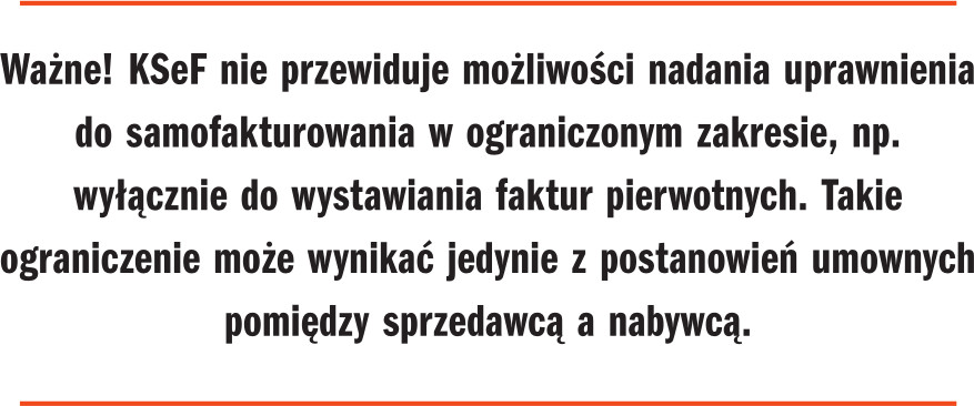 - Uprawnienia do samofakturowania nadaje sprzedawca w KSeF – krajowym lub unijnym nabywcom (z VAT UE).