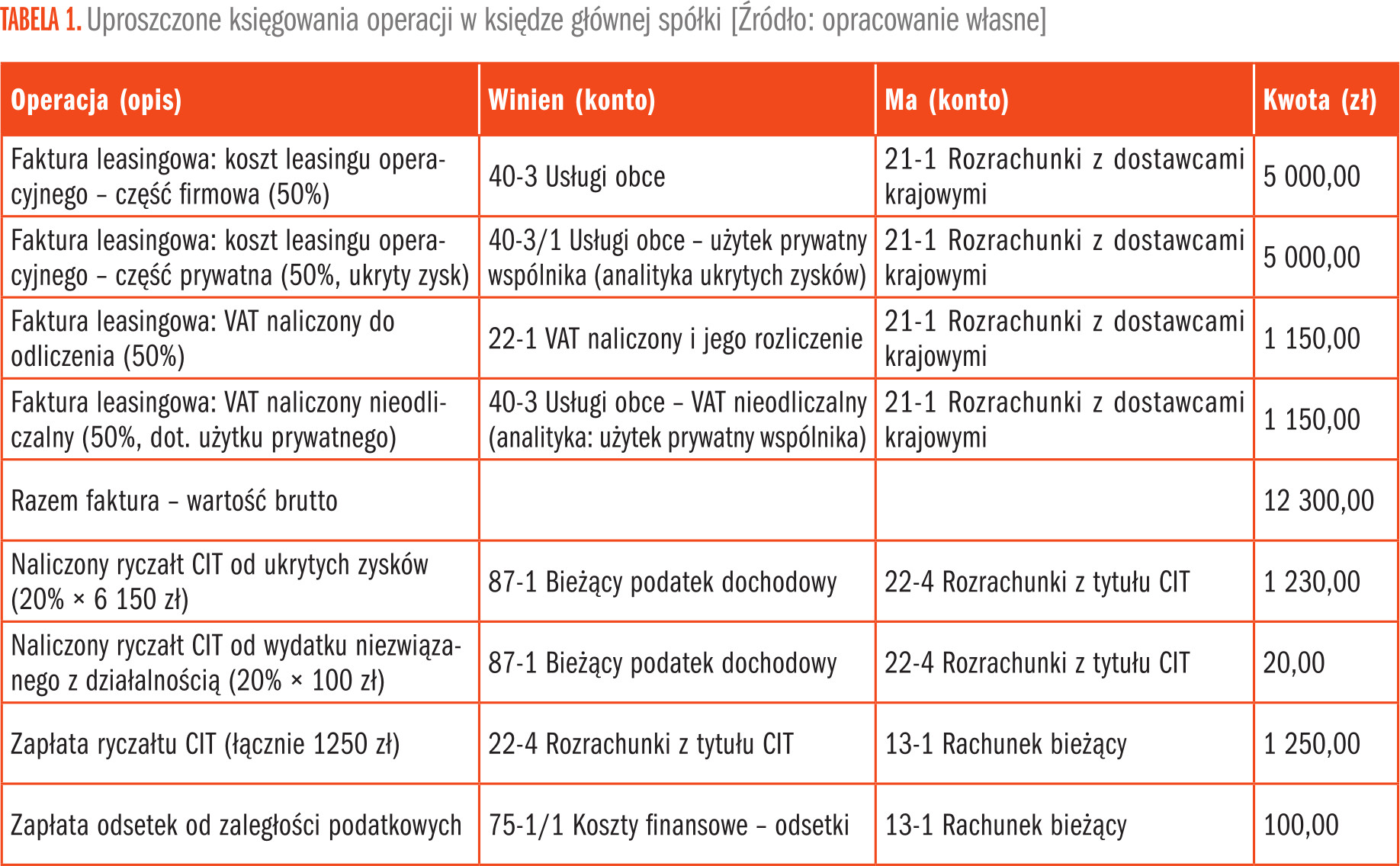 Spółka z o.o. opodatkowana estońskim CIT (stawka ryczałtu 20%) użytkuje samochód osobowy na podstawie leasingu operacyjnego. Pojazd wykorzystywany jest zarówno do celów służbowych, jak i do celów prywatnych przez wspólnika spółki.